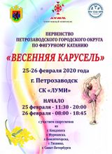 25-26 февраля состоится Первенство Петрозаводского городского округа по фигурному катанию "Весенняя карусель", с участием спортсменов из г. Мурманска, г, Бокситогорска, г. Тихвина, г. Санкт -Петербурга.